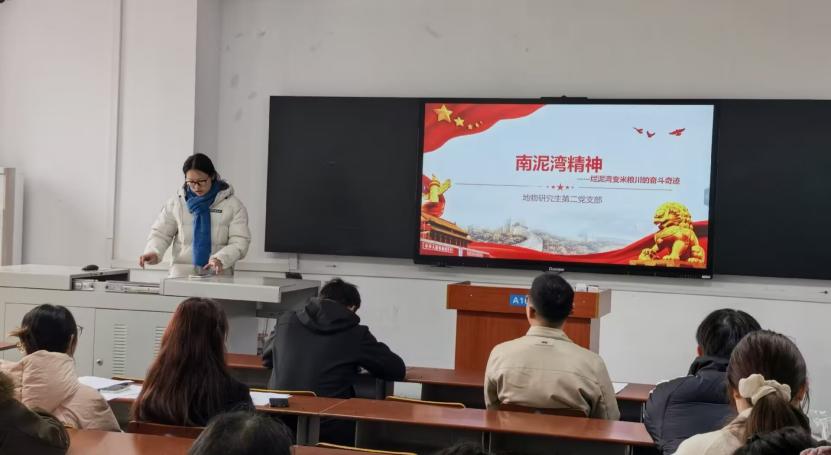 研究生第二党支部的王茜同志以“南泥湾精神——烂泥湾变米粮川的奋斗奇迹”为主题讲授党课。他介绍了南泥湾精神历史背景、内涵及大生产运动实践,展现自力更生、艰苦奋斗精神力量。他指出,南泥湾精神是革命年代的财富,是新时代党员应继承发扬的传统。青年党员要从中汲取力量,立足实际,勇对困难挑战,在学习科研中发扬自力更生精神,为社会发展贡献智慧力量。