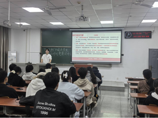 在申报材料指导环节,宣讲团队展示了优秀项目案例,围绕项目PPT和商业计划书的撰写要点展开讲解,强调项目需紧扣“顶天、立地、实践”三大原则:即服务国家战略、立足行业实际、聚焦真实问题。现场学生积极参与互动,纷纷表示宣讲内容实用,对备赛具有重要指导意义。