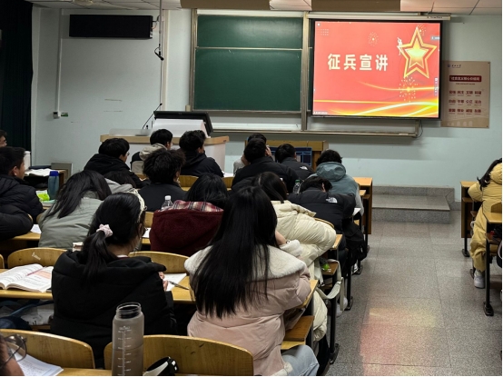 宣讲会上,黄俊杰结合当前国防和军队现代化建设需要,系统解读了2026年春季征兵的政策框架与关键要点,并对大学生应征入伍在学费补偿代偿、升学深造、公务员招考等方面的优待政策进行了详细说明,帮助同学们从发展角度全面认识参军入伍的价值与意义。