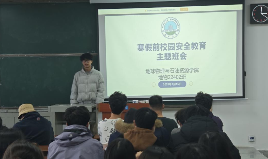 (通讯员 罗焕程)寒假临近,为全面增强学生安全防范意识,提升自我保护能力,地球物理与石油资源学院于2026年1月14日至1月16日组织各班级召开寒假校园安全教育主题班会。