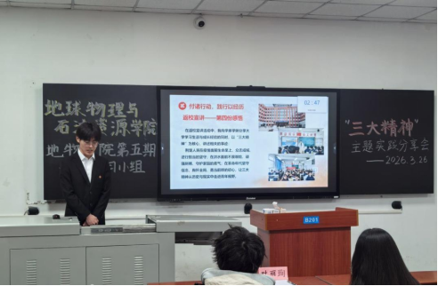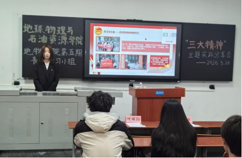 (通讯员 陈雅琳)为深学细悟“三大精神”的时代价值,巩固深化寒假社会实践成果,激励青年学子坚定理想信念、勇担时代使命,3月26日下午,地球物理与石油资源学院第五期“青年马克思主义者培养工程”学习小组在武教B-201教室举办“传承三大精神,践行青马使命”寒假实践分享会。院青马小组学生辅导员於佩瑶、李扬出席活动并担任评委,第五期全体青马学员参加交流。