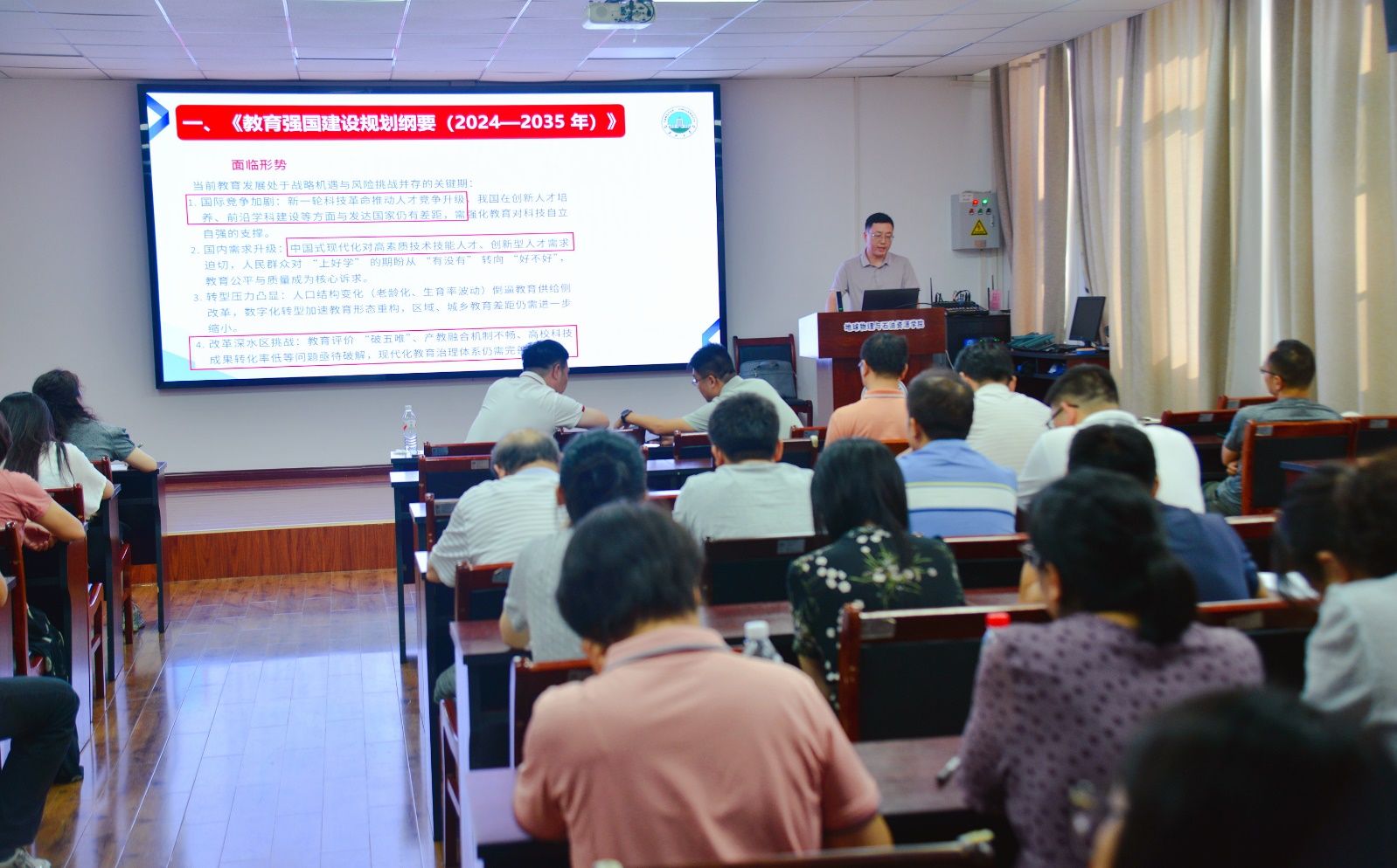 随后,副院长向葵布置了学院本科教学工作,紧扣《教育强国建设规划纲要(2024—2035年)》要求,详细分析了学院教学工作中存在的问题,提出了人才培养质量提升的发展路径。针对学校党委常规巡察整改任务,他指出:学院将实施“课程思政能力提升计划”,构建“专业+思政”双融合课程体系,完善思政育人成效评价机制;同时组建专业管理团队,启动国家级教学成果项目新任负责人选拔,建立优质教学资源数字化保护机制,确保国家级一流本科课程与虚拟教研室持续发展。