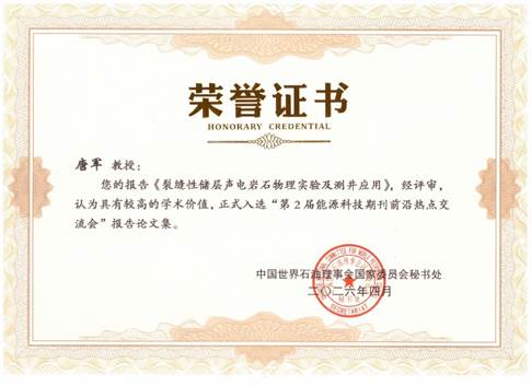 我院教师唐军在“非常规能源地质理论与勘探技术”分会场做了《裂缝性储层声电岩石物理实验及测井应用》专题报告,分享了团队在裂缝物理模型搭建、含裂缝岩石声电物理信号传播规律以及信号检测等方面的研究进展,并与参会专家进行了讨论,该报告也正式入选“第2届能源科技期刊前沿热点交流会”报告论文集。